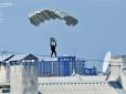 Туристів на півострові немає. Зате інших несподіваних "гостей", здається, більше, ніж самі місцеві хотіли б побачити. У мережі з'явилися фото парашутистів, що пролітають над дахами житлових будинків в окупованому Росією Криму. Знімки опубліковані в Fac...